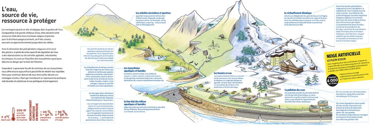 Dessins réalisés pour plusieurs brochures de sensibilisation grand public, pour l'Association Mountain Wilderness. ( Protection de la montagne ).